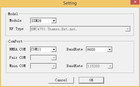 Open SIMCom_GPS_DEMO tools, go to Module->properties->module->select SIM28.