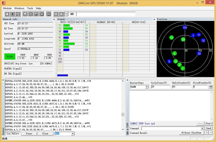 We should use "SIMCom GPS DEMO" tools to receive SIM28 module data.