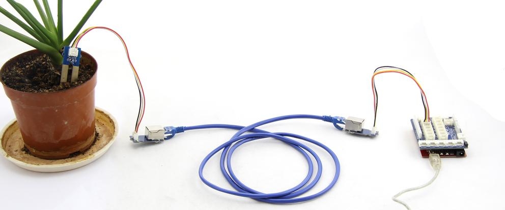 If you want to use the Moisture Sensor to real-time detect the moisture of soil in your garden, but you do not want to go to the garden personally. How to do it? Using two RJ45 adapter and a long network cable, you can solve this problem. The Hardware Installation should be: