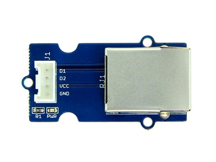 The Grove-RJ45 Adapter is a module which can convert a standard Grove connector to a RJ45 connector. Universal 4-Pin Grove cables can not meet the requirements when Arduino remote connect and control Grove module. Through two RJ45 adapter and a cable, It is able to achieve communication between Arduino and Grove module. This help solve the problem that Arduino and Grove are not convenient to connect because of the distance issue.