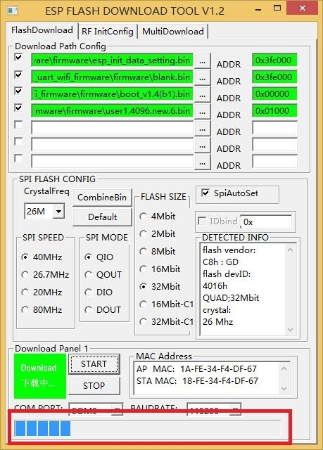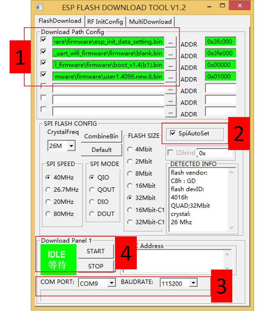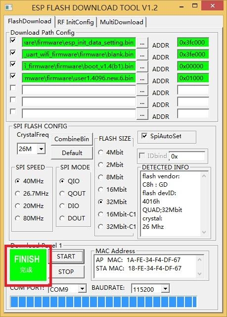 Our module board got a firmware burned into it for factory settings, you can burn other firmware to it if you like. Click here to download source code of factory setting firmware.
