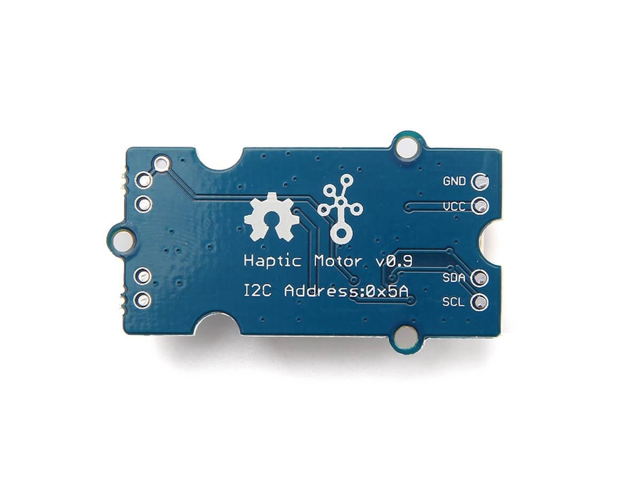 Grove - Haptic motor is a grove module integrated with DRV2605L which will give your project more feelings. This motor is specially designed for various effects, such as ramping the vibration level up and down, for wearables and other IoT devices. Right now we have developed an easy-to-use library which simulate 123 kinds in total of vibrating modes and this will make your prototyping quicker. Also, you can develop more advanced functions with driver DRV2605L which will improve actuator performance in terms of acceleration consistency, start time, and break time and is accessible through a shared I2C compatible bus or PWM input signal.