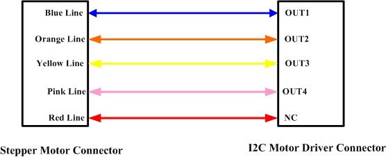 The connection between 24BYJ48 Stepper Motor and I2C Motor Driver is as shown below: