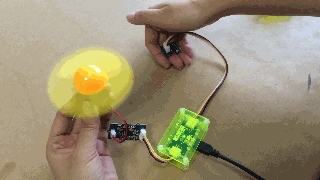 If using with a Grove - Slide Potentiometer, move the slider from the GND position to VCC and see the speed of the motor increase as the supplied voltage increases. Attach the soft-leaved fan and you have a variable speed personal fan that you can run at whichever speed you desire to fight the heat!