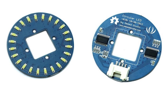 This is a unique ring– it has a florid body with 24 controllable LEDs. Maybe it will drive the inspiration out of you to make a glowing magic ring! There is a 1*1 square hollow-out in the middle of this module, where you can place a Grove Encoder in and make it a rotary visual encoder!
