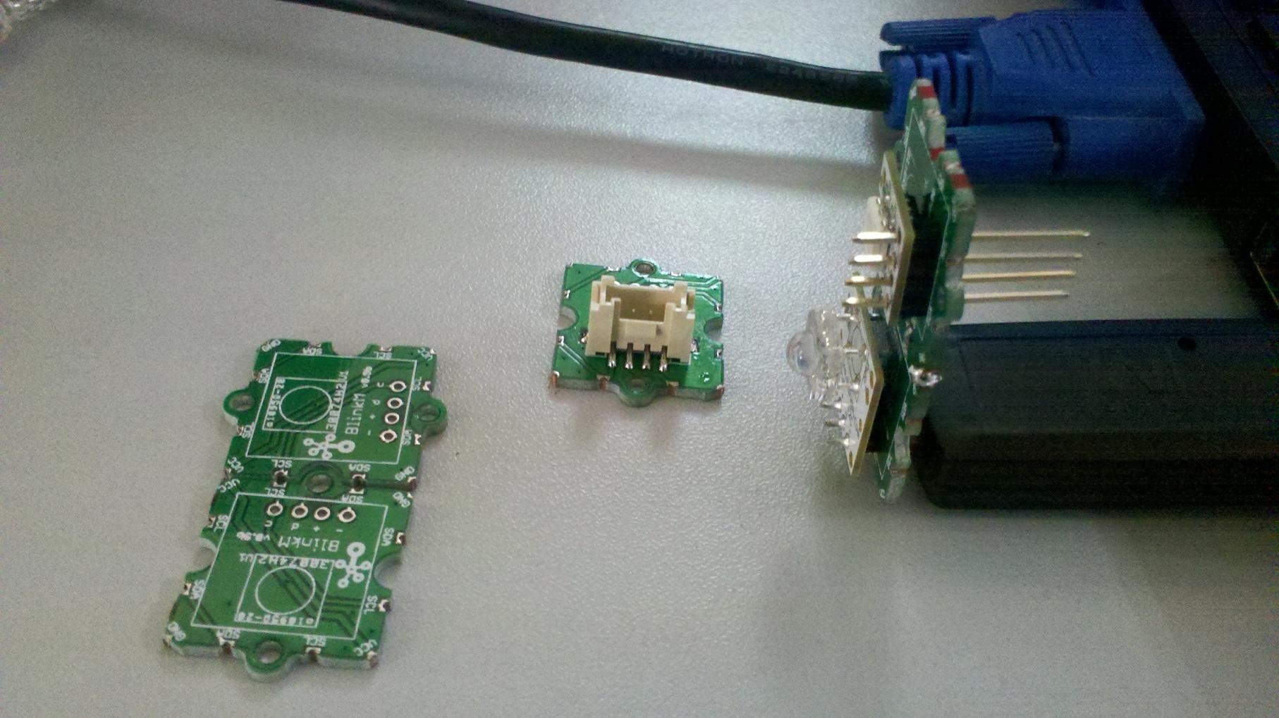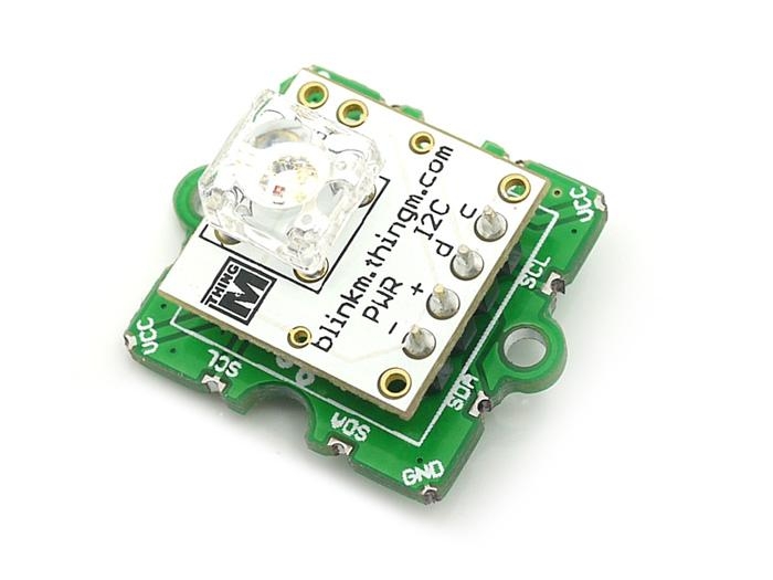 Note: Grove - BlinkM as a bridge between BlinkM device and arduino/seeeduino. See the datasheet and example Arduino Control Code on BlinkM page for details.