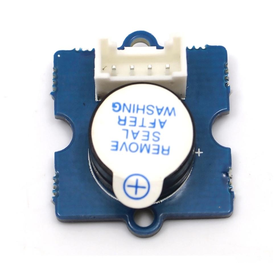 The Grove - Buzzer module has a piezo buzzer as the main component. The piezo can be connected to digital outputs, and will emit a tone when the output is HIGH. Alternatively, it can be connected to an analog pulse-width modulation output to generate various tones and effects.