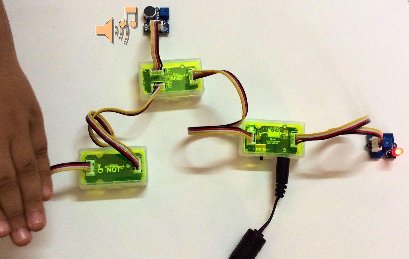 By connecting different input and output modules, a variety of projects can be made. For example, a sound or a light sensor can be used as input to trigger an output such as lighting up of an LED or activating a small DC motor circuit. Logic gate modules can add more flexibility into the logic through which inputs will trigger outputs.