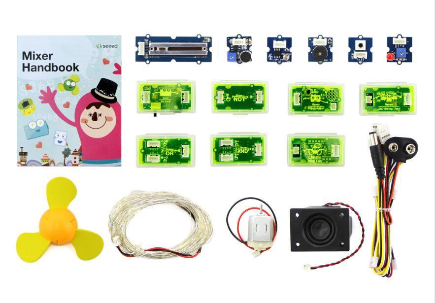 A Mixer Handbook that will help you get started on your projects quickly. This includes basic information about all the Grove Modules included in the pack and shows you how to build a few sample projects as well.