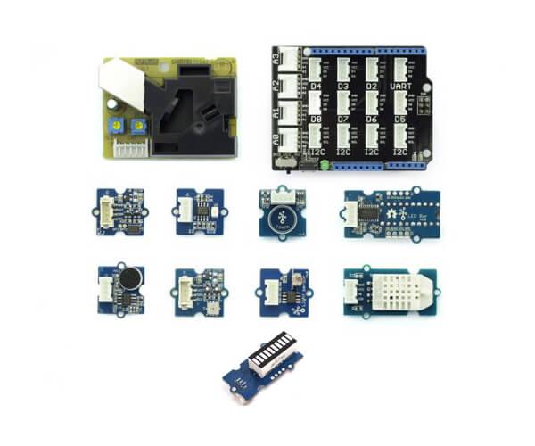 Grove - Starter Kit for LinkIt ONE is a toolkit for building your applications quicker and easier with LinkIt ONE development platform. With this kit, you can concentrate just on design process for your projects which will save you lots for time or expenses. It consist of the most popular modules for build IoT (Internet of Things) applications such as Base Shield.