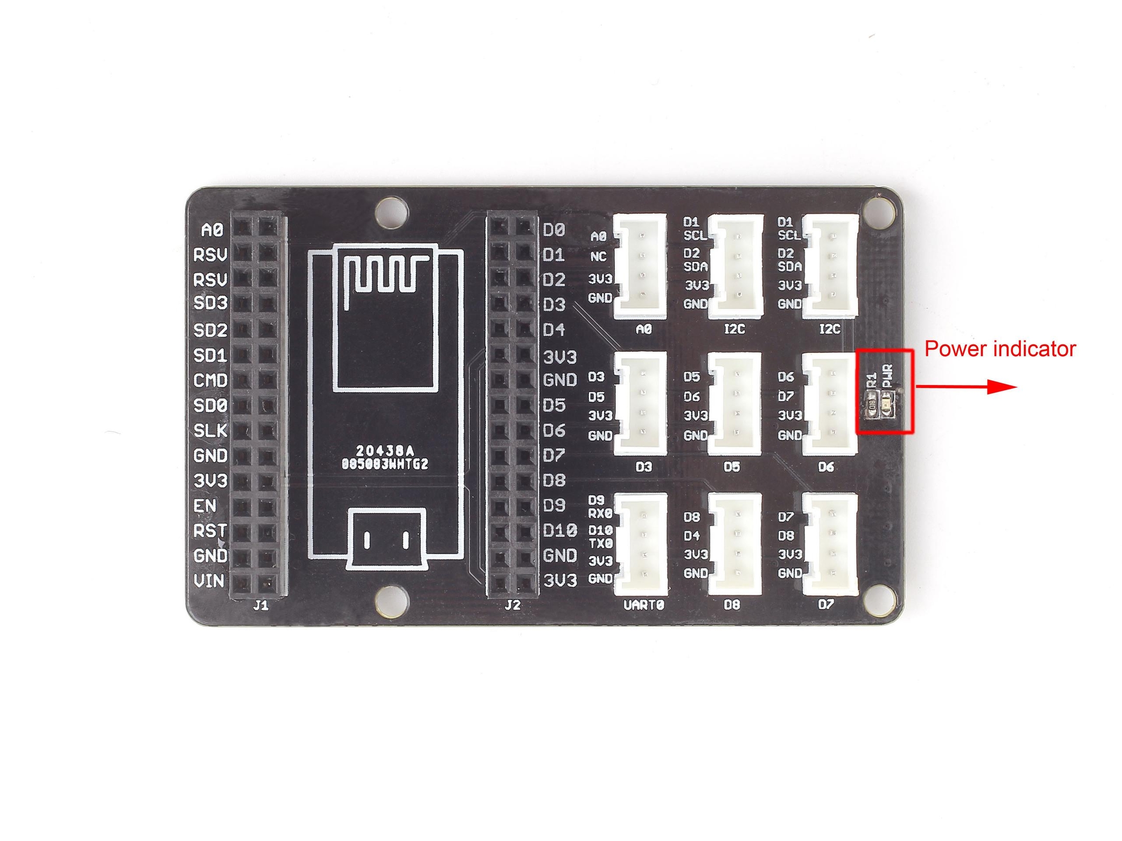 !!!Note 1. The staggered alignment of the pins – that is, D3 socket handles D3 and D5, D5 socket handles D5 and D6, the next D6 and D7, and so on. 2. There is no D4 socket. 3. UART Socket can multiplex with D9, D10 port and I2C Socket can multiplex with D1, D2 port. 4. It does not conflict if use four I2C Sockets simultaneously because every I2C device has its own address. 5. There is no SPI socket. Since none of the Grove module is using SPI socket.