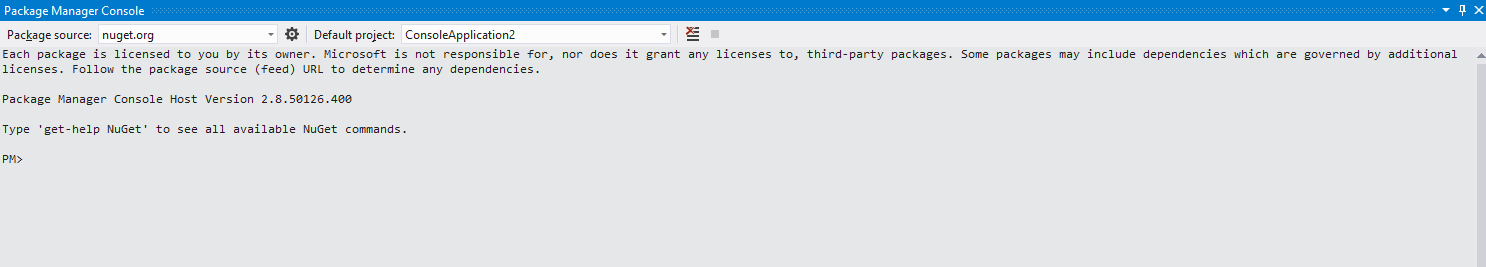 From the Tools menu, select Library Package Manager and then click Package Manager Console.