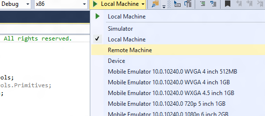 2) Next, in the Visual Studio toolbar, click on the Local Machine dropdown and select Remote Machine.