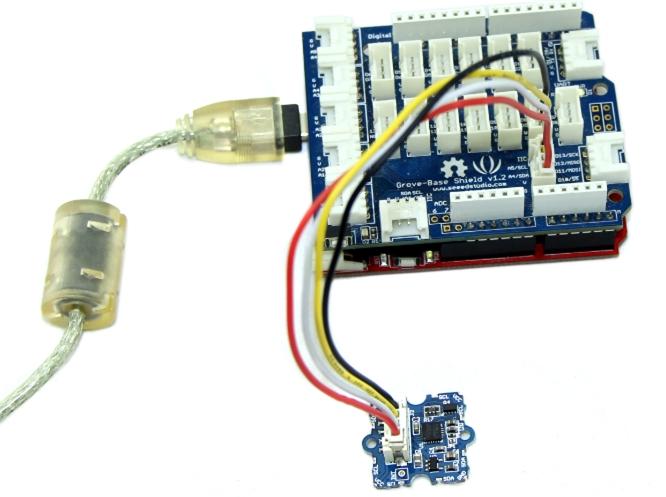 Connect this module to the I2C port of Grove - Base Shield via a Grove cable.