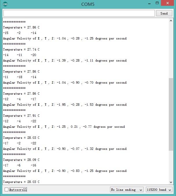 This demo will show you how to get data from this digital gyro, the data is in the unit of rad/s.