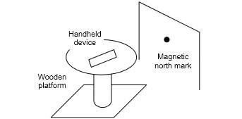 2. When test The clockwise angle between the magnetic north and x-axis, you can align the device Xa axis to any direction, but do not make it face down. Refer to the below picture: