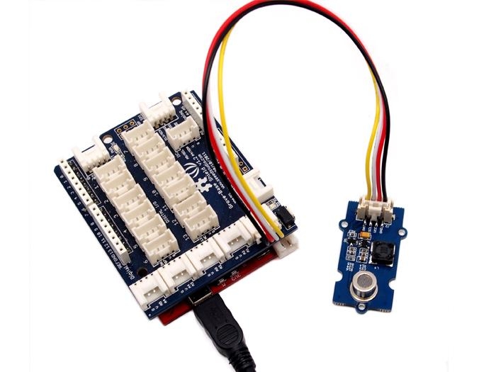 Grove products have a eco system and all have a same connector which can plug onto the Grove Base Shield. Connect this module to the A0 port of Base Shield, however, you can also connect Gas sensor to Arduino without Base Shield by jumper wires.
