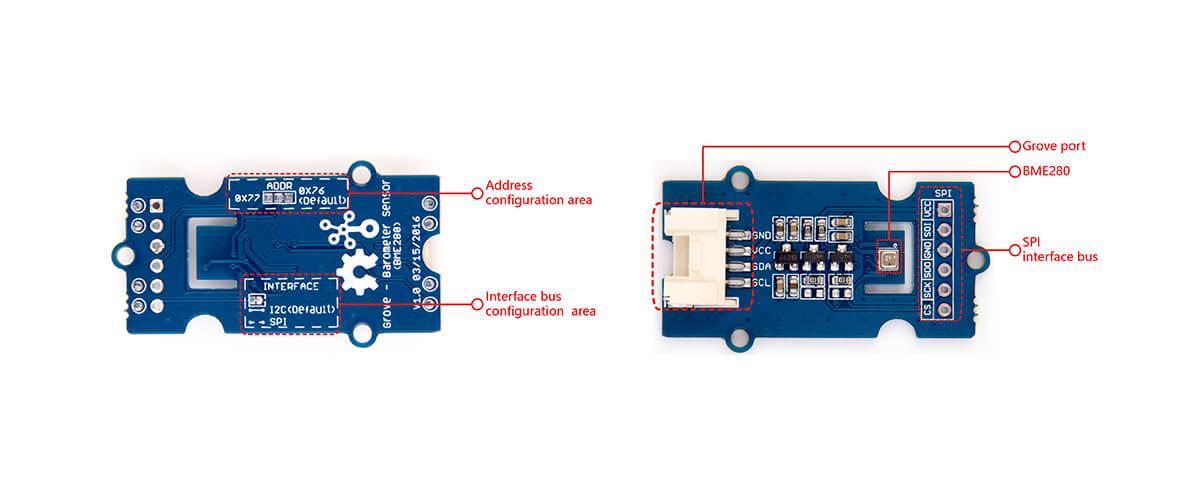 The BME280 is an upgraded version of BMP180, and BME280 gets dramatic improvements from BMP180. BME280 comes with a smaller footprint, lower power consumption, lower noise measurements, higher resolutions for pressure and temperature, lower RMS noise, newly added SPI bus, more measuring modes, higher measuring rate, and newly added filter against environmental interference. Since the atmosphere pressure reading is affected by altitude and temperature, we have added compensation features. Hence, Grove - Barometer Sensor (BME280) will be more reliable in providing precise temperature, atmospheric pressure values, humidity and approximate altitude data.