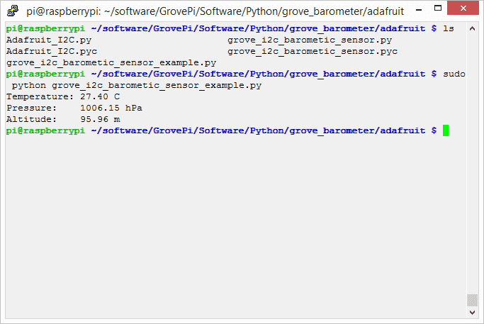 Barometric condition is one of the criteria used to predict coming change in weather and deduce altitude above sea level. Here is a demo to show you how to read the barometric data from this Grove - Barometer Sensor (BMP180).