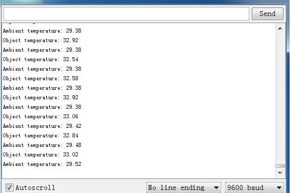 We will provide an example here to show you how to use this sensor to measure the temperature of the target which is in front of the sensor,and print the result on the serial monitor.