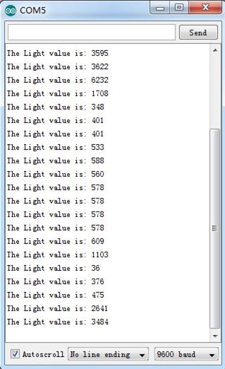 /* * Digital_Light_Sensor.ino * A library for TSL2561 * * Copyright (c) 2012 seeed technology inc. * Website : www.seeed.cc * Author : zhangkun * Create Time: * Change Log : * * The MIT License (MIT) * * Permission is hereby granted, free of charge, to any person obtaining a copy * of this software and associated documentation files (the "Software"), to deal * in the Software without restriction, including without limitation the rights * to use, copy, modify, merge, publish, distribute, sublicense, and/or sell * copies of the Software, and to permit persons to whom the Software is * furnished to do so, subject to the following conditions: * * The above copyright notice and this permission notice shall be included in * all copies or substantial portions of the Software. * * THE SOFTWARE IS PROVIDED "AS IS", WITHOUT WARRANTY OF ANY KIND, EXPRESS OR * IMPLIED, INCLUDING BUT NOT LIMITED TO THE WARRANTIES OF MERCHANTABILITY, * FITNESS FOR A PARTICULAR PURPOSE AND NONINFRINGEMENT. IN NO EVENT SHALL THE * AUTHORS OR COPYRIGHT HOLDERS BE LIABLE FOR ANY CLAIM, DAMAGES OR OTHER * LIABILITY, WHETHER IN AN ACTION OF CONTRACT, TORT OR OTHERWISE, ARISING FROM, * OUT OF OR IN CONNECTION WITH THE SOFTWARE OR THE USE OR OTHER DEALINGS IN * THE SOFTWARE. */ #include <Wire.h> #include <Digital_Light_TSL2561.h> void setup() { Wire.begin(); Serial.begin(9600); TSL2561.init(); } void loop() { Serial.print("The Light value is: "); Serial.println(TSL2561.readVisibleLux()); delay(1000); }