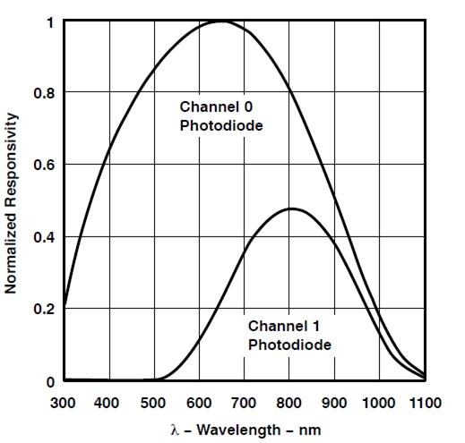 Two channels of the digital light sensor have different response characteristic. That's why you can choose its working mode by having both of them on or one of them off.