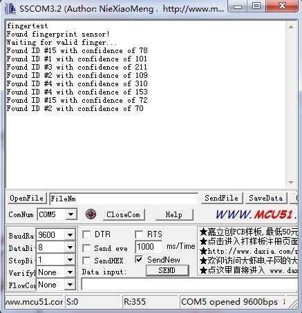 When prompted, press a different/same finger to the sensor. If it is the same finger, you should get a match with the ID # as show below.