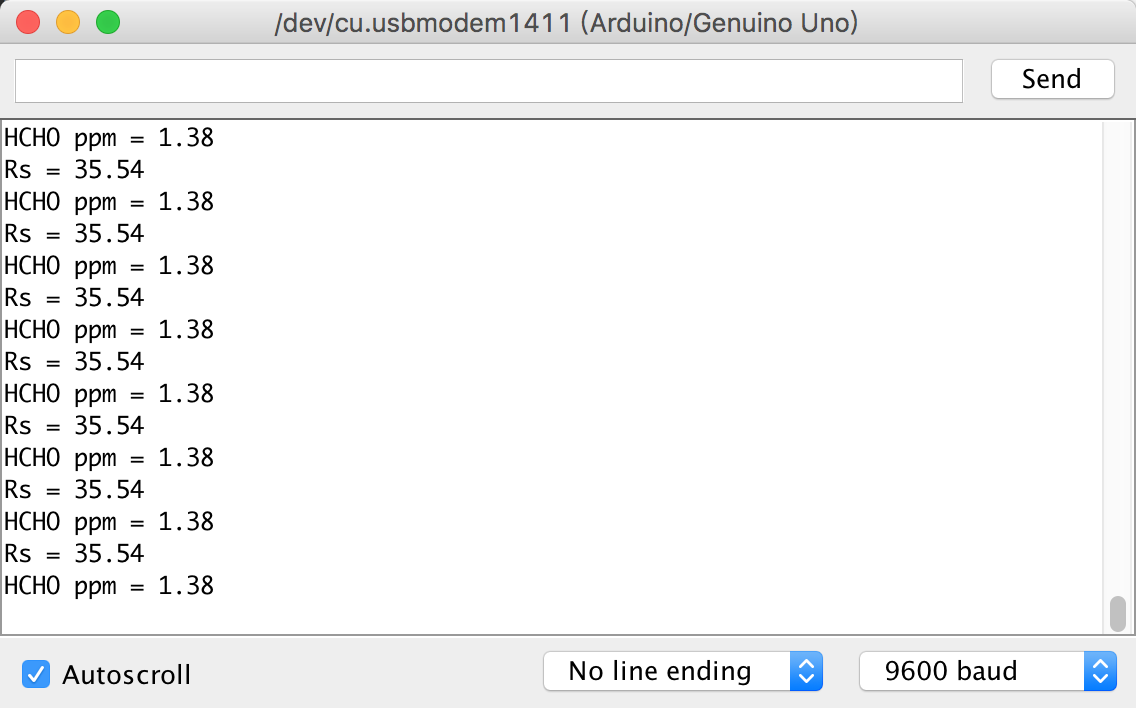 Then move the sensor into the office, and read the HCHO ppm value: