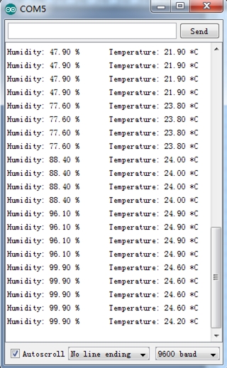 Restart the Arduino IDE. Open “ DHTtester” example via the path: File --> Examples --> Grove_Humidity_Temperature_Sensor-master --> DHTtester. Through this demo, we can read the temperature and relative humidity information of the environment.