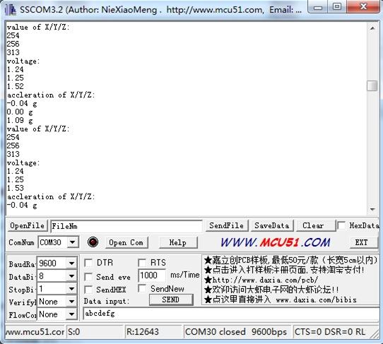 Downloading the demo code: Measuring Acceleration, then open serial monitor, turn the sensor any angle, you can see the digital angle value sent from the accelerometer to the monitor.